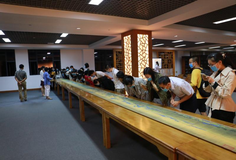 本次《千里江山图》近距离品鉴活动让参与读者大饱眼福,满载而归。“卷轴打开后,太震撼了!仔细看,如芝麻大小的人物形态都清晰可见,太神奇了!”生命科学学院的马同学如是说。据悉,本次活动的举办场地香山书房,位于德旺图书馆五楼D区。该空间古香古色,开阔通透,主要用来承办文化讲座或艺术品鉴体验活动,现已面向全校师生开放。德旺图书馆将秉承全心全意为读者服务的宗旨,紧紧围绕学校“双一流”建设工作,进一步合理规划空间,举办内容丰富、形式多样的文化体验活动,充分发挥图书馆作为大学“第二课堂”的重要作用。