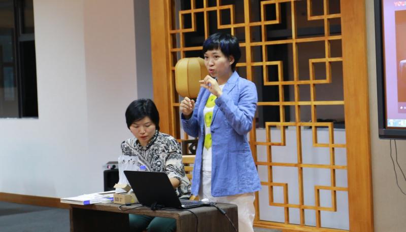5月10日晚7点半,《千里江山图》近距离品鉴活动在德旺图书馆五楼D区香山书房举行。本次品鉴交流活动特邀厦门大学艺术学院美术系教师陈晓娟与中国美术家协会会员孙红丽,带领30余名读者了解这幅名画的“前世今生”,并现场赏析1:1《千里江山图》仿作。