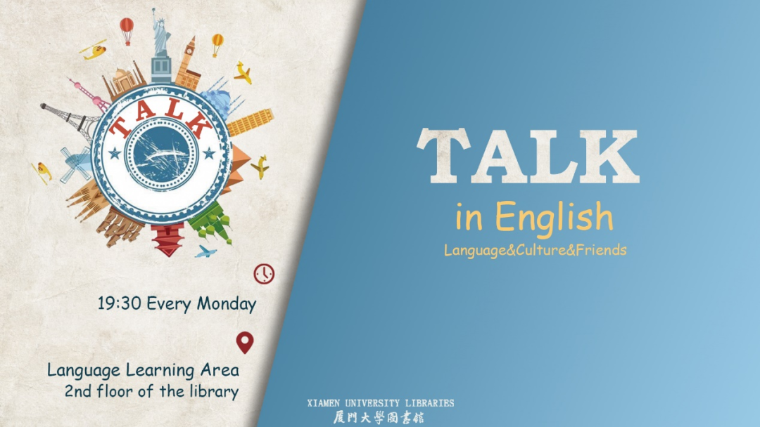 TALK 是由德旺图书馆与Utalk协会联合举办的英语交流活动,旨在通过英语学习和口语练习,为广大英语爱好者提供一个可以大胆说英语的空间和机会,从而提升同学们“说英语”、“用英语”的能力。活动每周一晚上举办,通过话题讨论、主题分享、互动游戏等方式,满足校区师生跨语言、跨文化交际的需要。