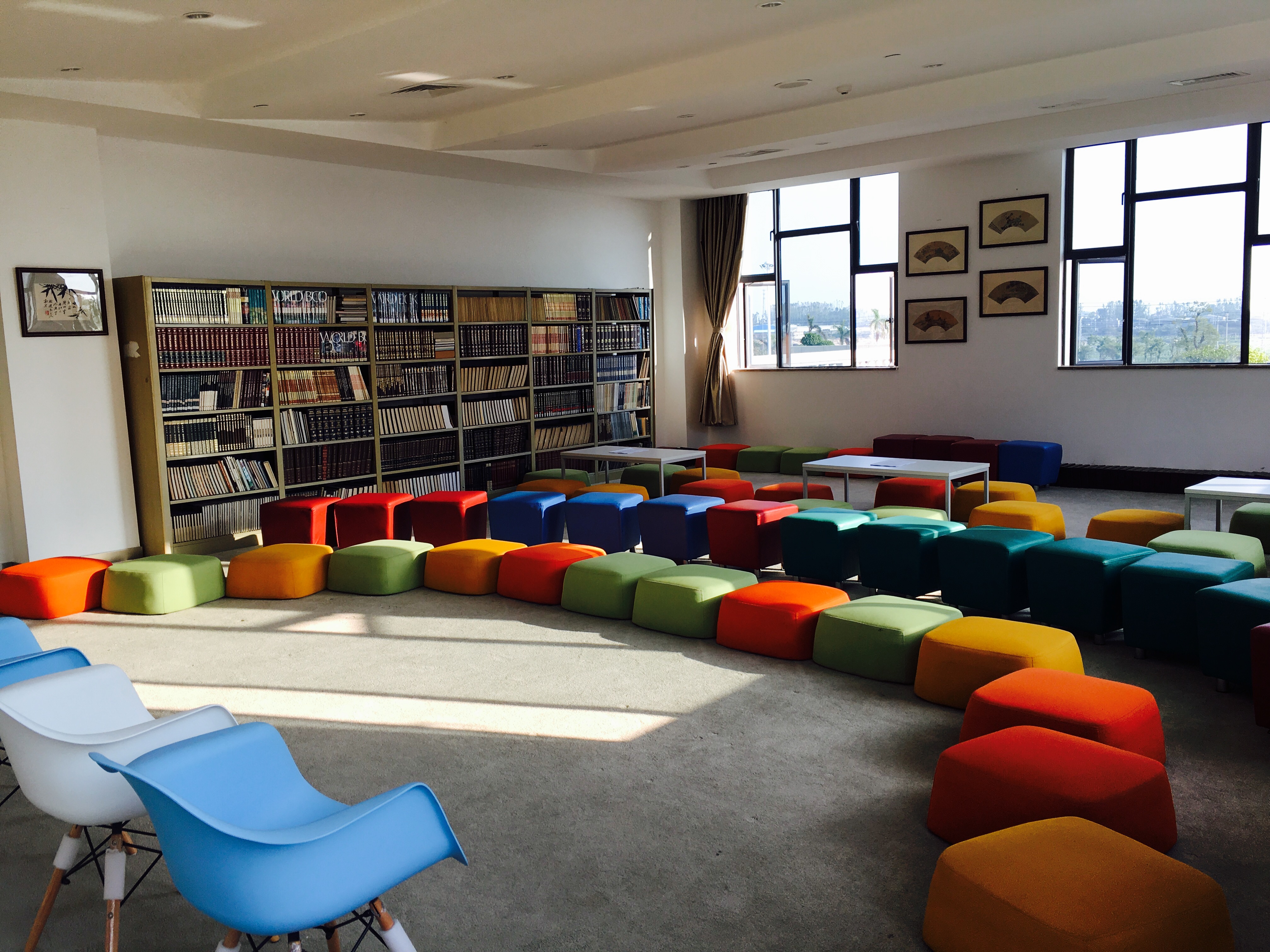 梦享屋:位于二楼C区。该空间通透明亮,配备有舒适的座椅和智能触屏电脑,可为小规模的学术沙龙、论坛、分享会等提供场地和设备支持。目前主要用于举办图书馆的品牌活动英语交流沙龙TALK,“书香满园庭”读书会等。英语交流沙龙TALK每周一次,为更多想说英语、爱说英语、敢说英语的同学搭建一个轻松交流的平台。“书香满园庭”读书会每月一期,以小而精的沙龙形式开展活动。大家围圈而坐,打破“你听我讲”的被动灌输模式,以“领读、分享、讨论、总结”的形式激活知识“输出”,阅读素养、深度思考、表达能力,一场活动,三项提升!同时,该空间还作为图书馆特藏智力玩具的体验互动区域,设置了19个主题玩具展柜,提供智力玩具相关的参观、教学、体验等服务。